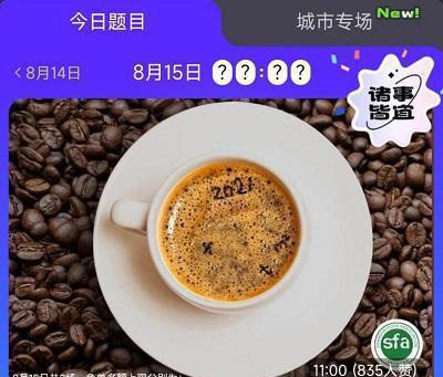 饿了么免单8.15答案已经为用户们汇总,这一次的免单答案和咖啡有关,关于饿了么免单8.15的正确答案分享,小编已经整理好了,饿了么免单8.15答案一览,赶紧一起来看看吧。