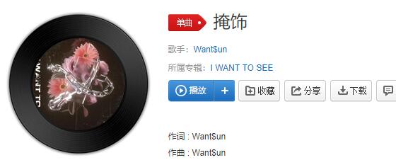 这首歌是由刘宇斐(Want$un)演唱的《掩饰》,该歌曲在QQ音乐是无法搜索到该版本的,只能通过网易云音乐才能搜索到,所属专辑《I want To SEE》,发行于:2020-12-15。