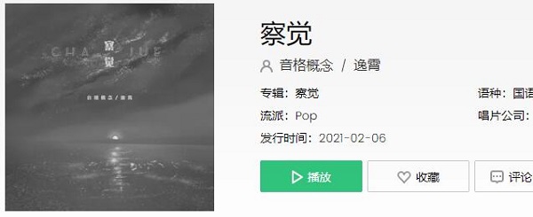 这首歌是由音格概念和逸霄演唱的《察觉》,所属专辑《察觉》,发行时间:2021-2-6。