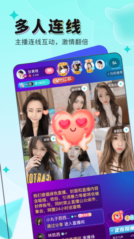 1、支持多人连麦互动,让视频直播变得更有趣,各种搞笑话题不断;