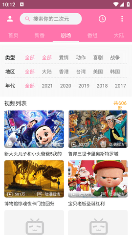 2、海量高清动画资源,优化的界面,易于搜索动漫;