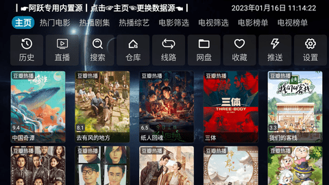 阿跃影视仓app内置源版是一款tvbox魔改的最新电视盒子软件,支持电视端和手机安装使用,操作与tvbox类似,是一款非常不错的电视盒子APP,用户可以在这里免费观看海量的影视资源,还能观看电视直播节目,大家只需要将自己的影视源填入即可,欢迎大家前来下载。