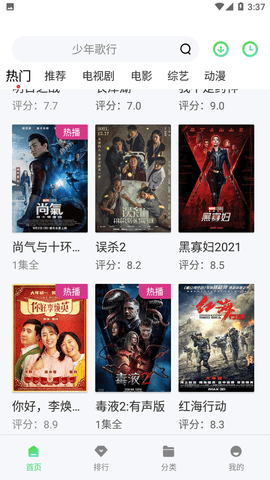 3、剧荒时可以通过分类页中的最近热播、最近更新以及评分最高找到你想看的,还可以直接点击右上角的搜索按钮,在热门推荐中查找。