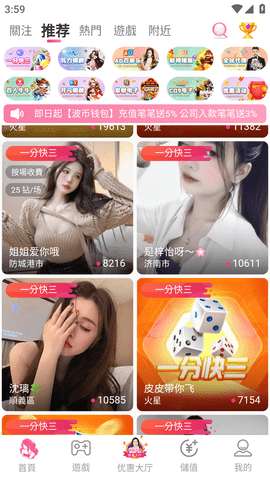3、中实时推荐最热门的直播内容,各种各样的礼物以便更好地抓住主播的注意力。