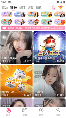 可人直播破解版APP让你无需充值会员就能体验到尊享会员的服务,其中的直播视频福利更是可以无限制观看,而且这里美女众多,类型多元,所以作为宅男的可以可以有更多精彩的直播交友体验,这里有千姿百色,你喜欢的,幻想的这里都有,你欲求,你寂寞。我唱歌跳舞。分外热闹。是大家体验众多精彩直播交友体验的欢乐天地。