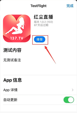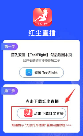 第一步下载TestFlight并进行安装,安装完成后返回红尘直播下载页面