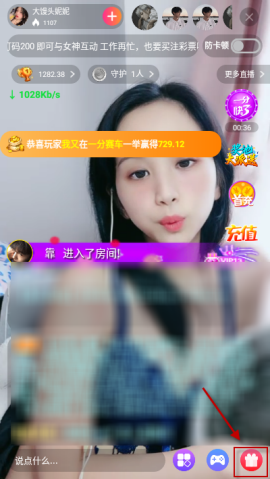 1、首先我们需要进入主播的直播间,然后点击右下角的礼物按钮