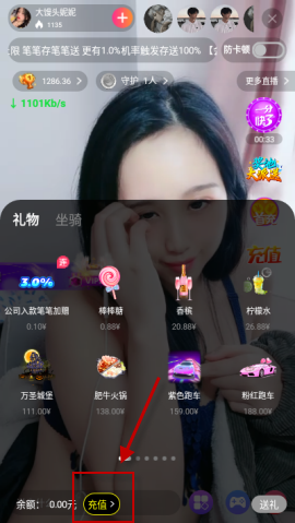 3、充值完毕后返回礼物选择窗口,选择你想要打赏的礼物,然后点击送礼就ok了。