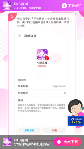 3、华为自带的“手机管家”中会检测出敏感内容,请无视放心使用。
