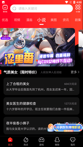 1、软件中的作品非常多,我们可以在软件中搜索自己想要的内容,让用户可以很愉快的享受