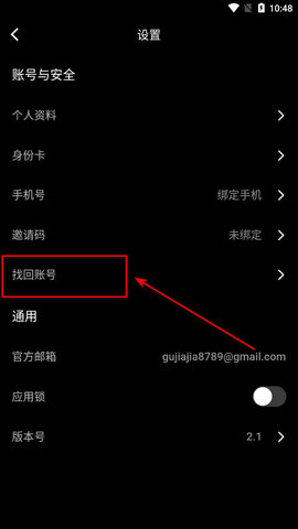 2、点击“找回账号”