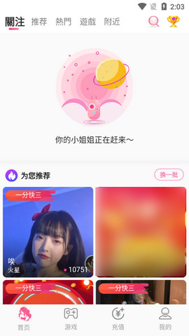 2、进入后就有推荐的内容,用户可以搜索主播,或者点击右上方的更多频道