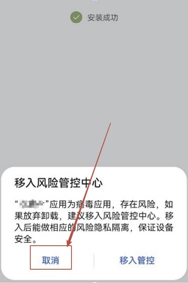 安装成功后弹出“移入风险管控中心”对话框,点击“取消”即成功完成安装。