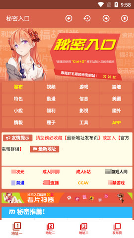 4、秘密入口地址实时更新,无需担心网站打不开或失效等问题