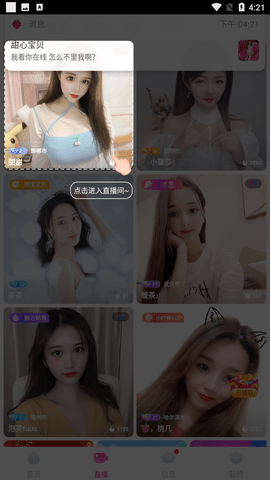 3、观看直播:主播为你视频直播K歌唱响,表演逗趣,喊麦搞怪,永久免费欣赏。