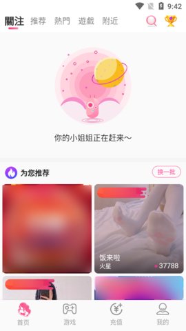 2、进入后就有推荐的内容,用户可以搜索主播,或者点击右上方的更多频道