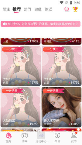 海棠直播是一款拥有超高颜值水准的美女直播平台。在这里不仅能看欣赏到国内的网红帅哥美女,还能看到国外的人气直播们,是一款国内外都能看遍的直播平台。各种才艺大显身手,美女小姐姐们让你挑花眼,欢迎下载体验。