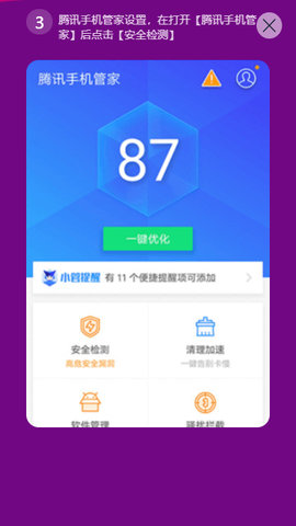 3、腾讯手机管家设置,再打开【腾讯手机管家】后点击【安全检测】