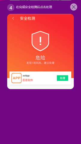 4、在完成安全检测后点击处理