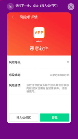 5、继续下一步,点击【移入信任区】