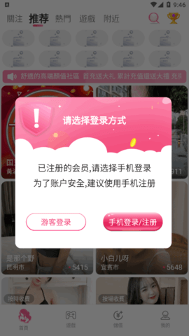 4.所有的用户都是严格经过了后台实名认证,在这里你可以放心的进行交友互动,并且平台还会根据你喜欢的类型推荐相应的直播带给你。
