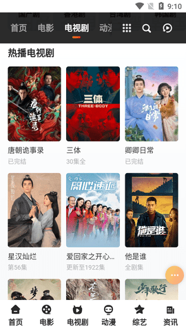 1、首先打开软件主页,点击主页上方菜单中的电视剧;