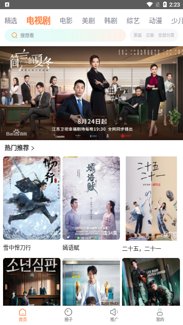 1、首先打开软件主页,点击主页上方菜单中的电视剧;