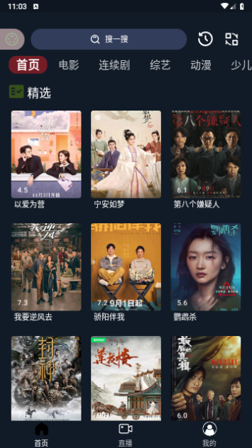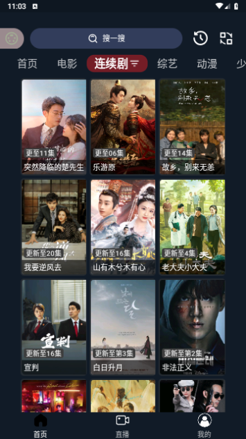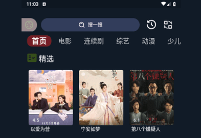 1、首先打开软件主页,点击主页上方菜单中的电视剧