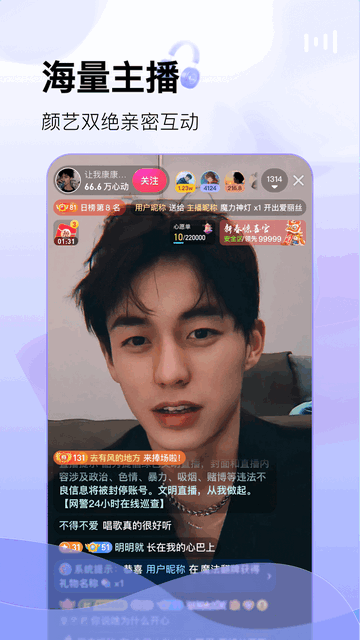 【高颜主播才艺表演】娱乐玩法多样,随时随地与主播面对面聊天。