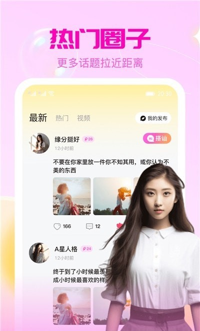 3. 聊了么视频交友app内设有各种热门圈子,在这些圈子中,用户可以参与讨论、分享观点、发布动态等