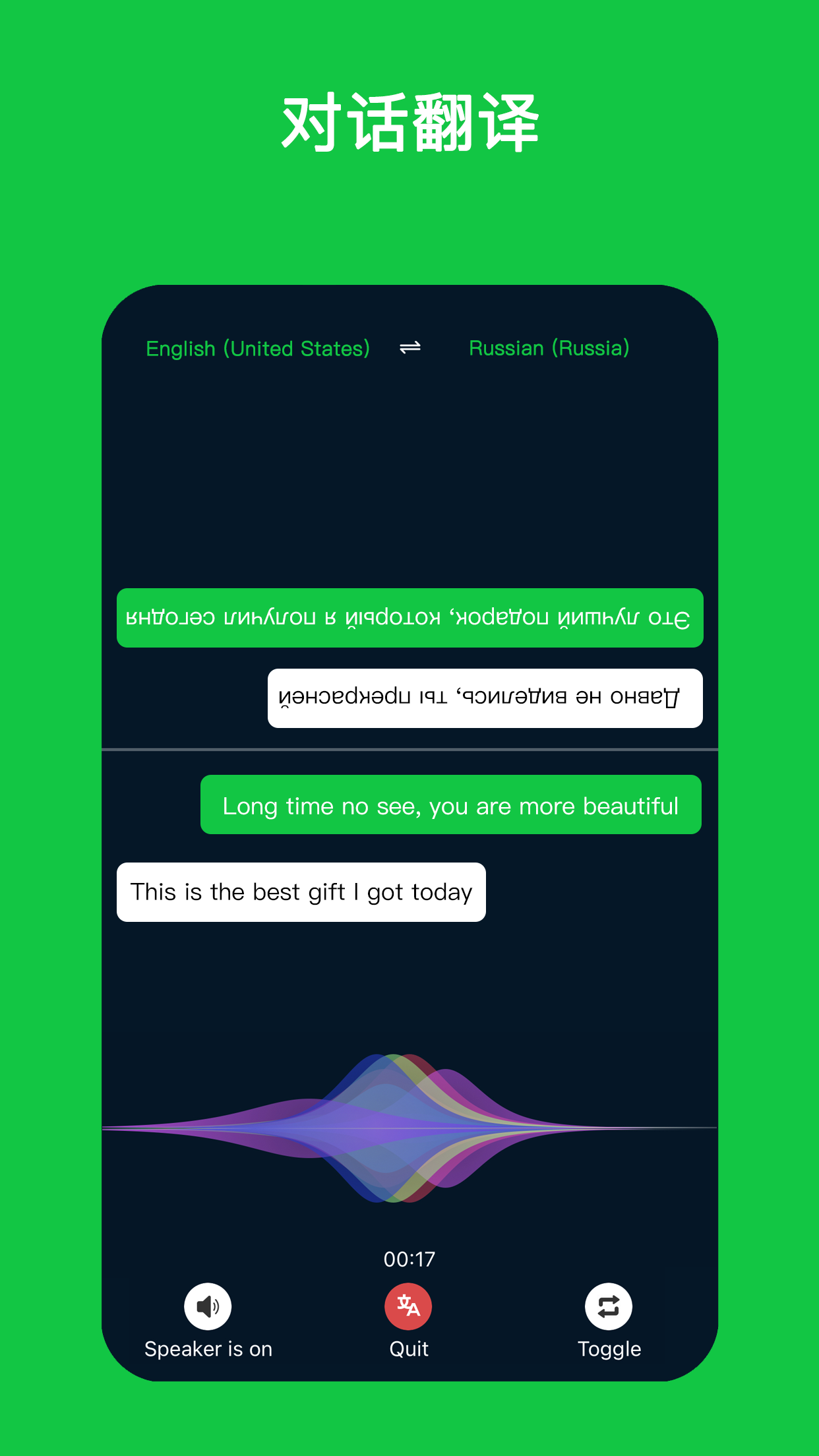 4.同声翻译:对发送给对方的语音进行识别,并翻译成对方系统语言的语音发送给对方
