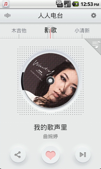 4、碰到喜欢的歌,加颗心,碰到不喜欢的歌,拖入垃圾桶,随时告诉人人电台您的喜好