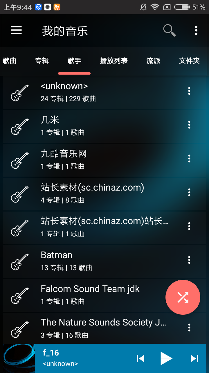3、最近添加、艺术家,专辑,歌曲,播放列表和流派可供用户按各种习惯的方式选择曲目欣赏,界面类似,方便用户快速筛选定位歌曲