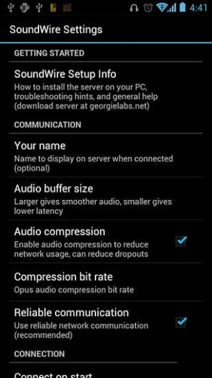 soundwire是一款实用的安卓+PC软件,它可以把你的安卓手机变成一个音箱,如果你的电脑没有音箱,想看电影怎么办?可以试试这款软件,只要PC和安卓同在一个局域网就可以让手机充当音响设备。