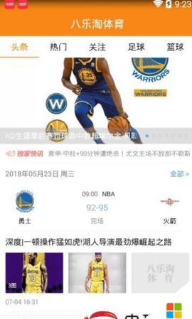 八乐淘体育app提供西甲、CSL、篮球、英超、德甲、意甲和冠军联赛等体育赛事的视频、新闻和论坛交流。所有的中超联赛,亚洲冠军联赛和足协杯,所有的英雄在中原竞争,中国队可以享受所有的事件!