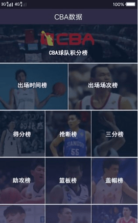4.技术统计,包括得分列表、篮板列表、助攻列表、抢断列表、盖帽列表、失误列表、神掷列表、三分列表和罚球列表。