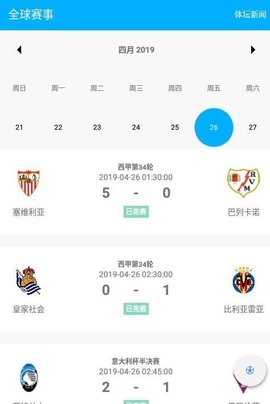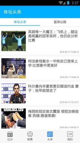 首页可以查看不同类型的体育新闻展示,具体搜索检索,广告,详情查看