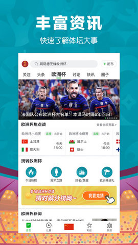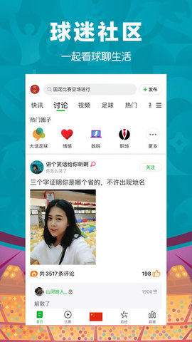 3.【圈】根据球队、联赛、球员和各种主题建立的各种圈已成为球迷兴趣交流的主要阵地。圆圈会谈论球,并发表评论,使观看球更令人兴奋。