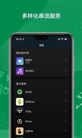 3.快速搜索音乐、高质量播放音乐、查看音乐信息、优化音乐数据传输等。