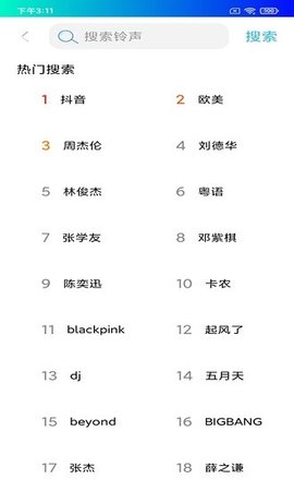 2、通过免费手机铃声软件可以快速找到流行音乐。直接搜索。