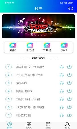 6、及时为您更新当前流行铃声资源,很容易拥有流行铃声。