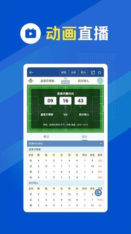 2、数据统计:联赛杯得分排名,球队最近在比赛中的表现,让球迷更清楚地阅读比赛。