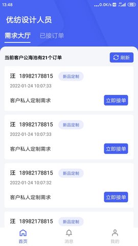 2、优纺商家APP可以随时查看信息录入,增加订单管理功能。
