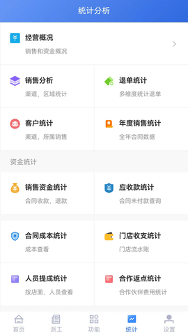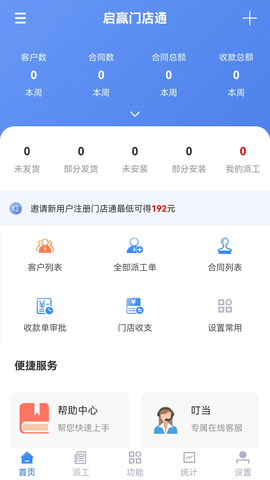 3、启赢门店通APP为用户提供客户管理、销售管理、合同管理、资金管理和调度管理。