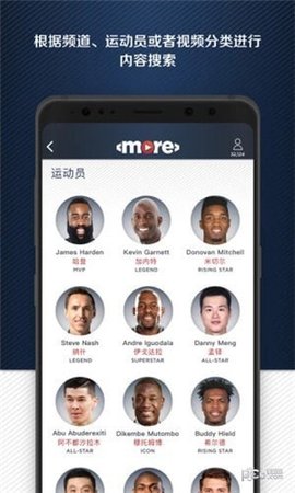 more体育短视频app基于频道、运动员或视频分类的内容搜索
