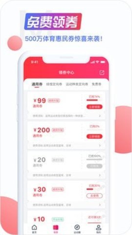 在这里用户可以一键优惠券免费低收费健身,体育惠民。
