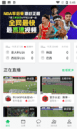 4.比赛直播:全面覆盖篮球、足球、网球、羽毛球等赛事,随意切换比赛线,同步直播视频。