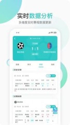 3.实时更新职业赛事和赛程数据,并从进球时间分布、对抗记录、近期成绩、联赛得分等多维数据进行分析。