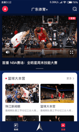 【直播】提供用户最喜爱的广东体育频道、ESPN、NBA和广东体育台的直播,提供粤语评论。