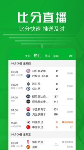 【比分直播】全球足球和篮球比赛,实时比分,而且支持自定义进球提醒。